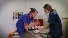 Во второй серии нового сезона "Ветеринаров" на "Живой планете": - У кота Гагарина кровоточат десны и он очень исхудал. Что сделать, чтобы коту стало не больно есть? - В Московском зоопарке у молодой нутрии парализованы задние лапы. Поможет ли физиотерапия вернуть подвижность животному? - А в террариуме Московского зоопарка у плюющих кобр закончился медовый месяц. Как определить, пора ли отсаживать самку, чтобы она вынашивала детенышей? - Игуана Вася по неосторожности сломала кончик хвоста. Вырастет ли у игуаны новый хвост?